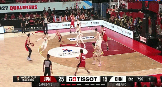 高诗岩借掩护三分追平比分!中国男篮49-49日本