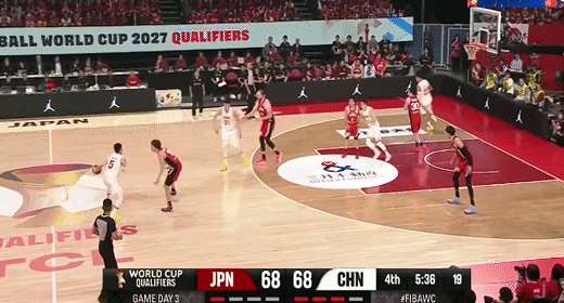 廖三宁突分朱俊龙三分命中!中国男篮61-58日本