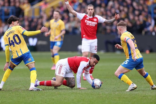 至于首发,阿尔特塔也轮换了彻底,除了卡拉菲奥里和特罗萨德外,其余主力全部轮休。然而,现实就是那么玄幻:阿尔特塔千算万算派上状态火热的特罗萨德,可没等到他建功立业,就因伤无法坚持被替换下场。